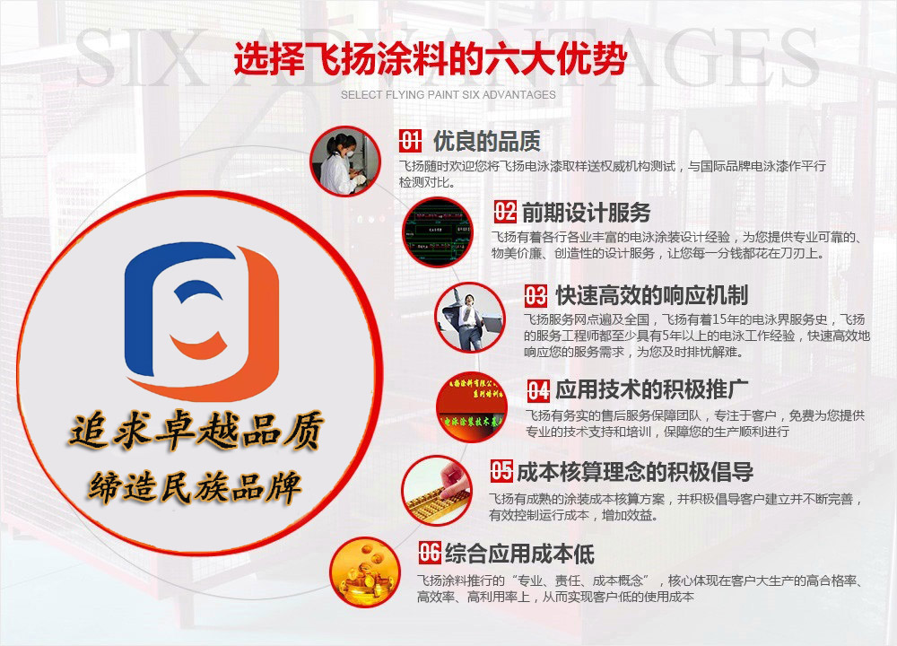 飛揚涂料創(chuàng)立于1999年,是專注于陰極環(huán)氧電泳漆研發(fā)、生產(chǎn)、銷售和服務(wù)的電泳漆生產(chǎn)廠家,公司已通過IATF16949國際質(zhì)量管理體系認(rèn)證。“提供適合客戶的產(chǎn)品,助力客戶提高產(chǎn)品品質(zhì)、降低運行成本、增加效益”是飛揚立足業(yè)界的根本!...